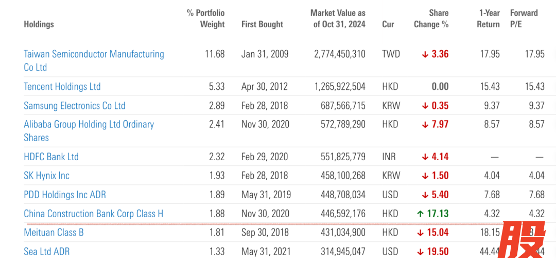 规模76亿美元的新兴市场基金 MFS Emerging Markets Equity A,10月份加仓建设银行3.98%,建设银行为其第六大重仓股。