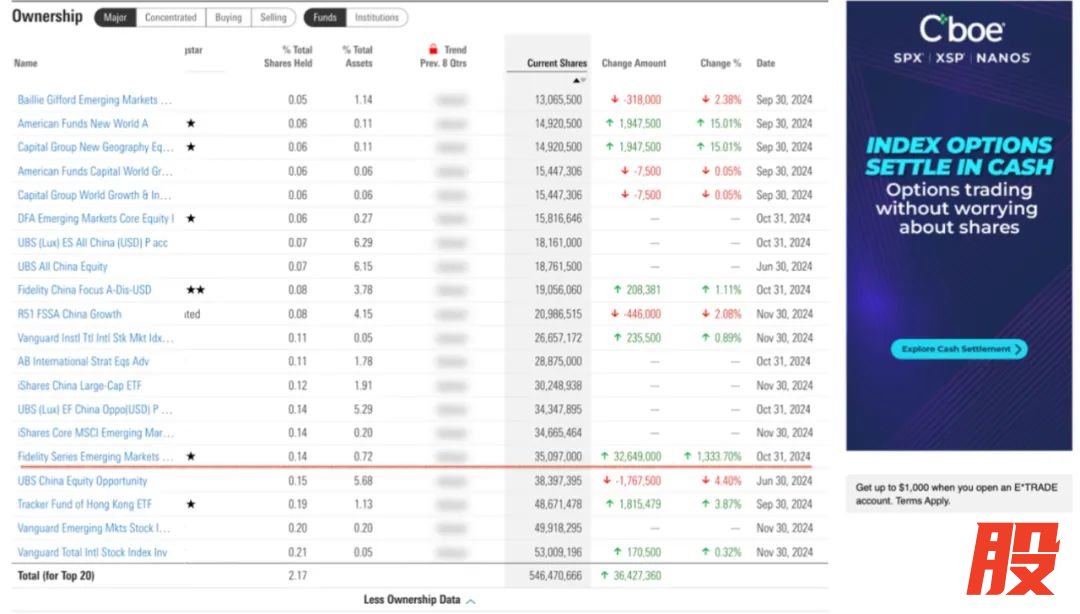 富达旗下的中国市场基金和新兴市场基金对于银行股的增持幅度更大。