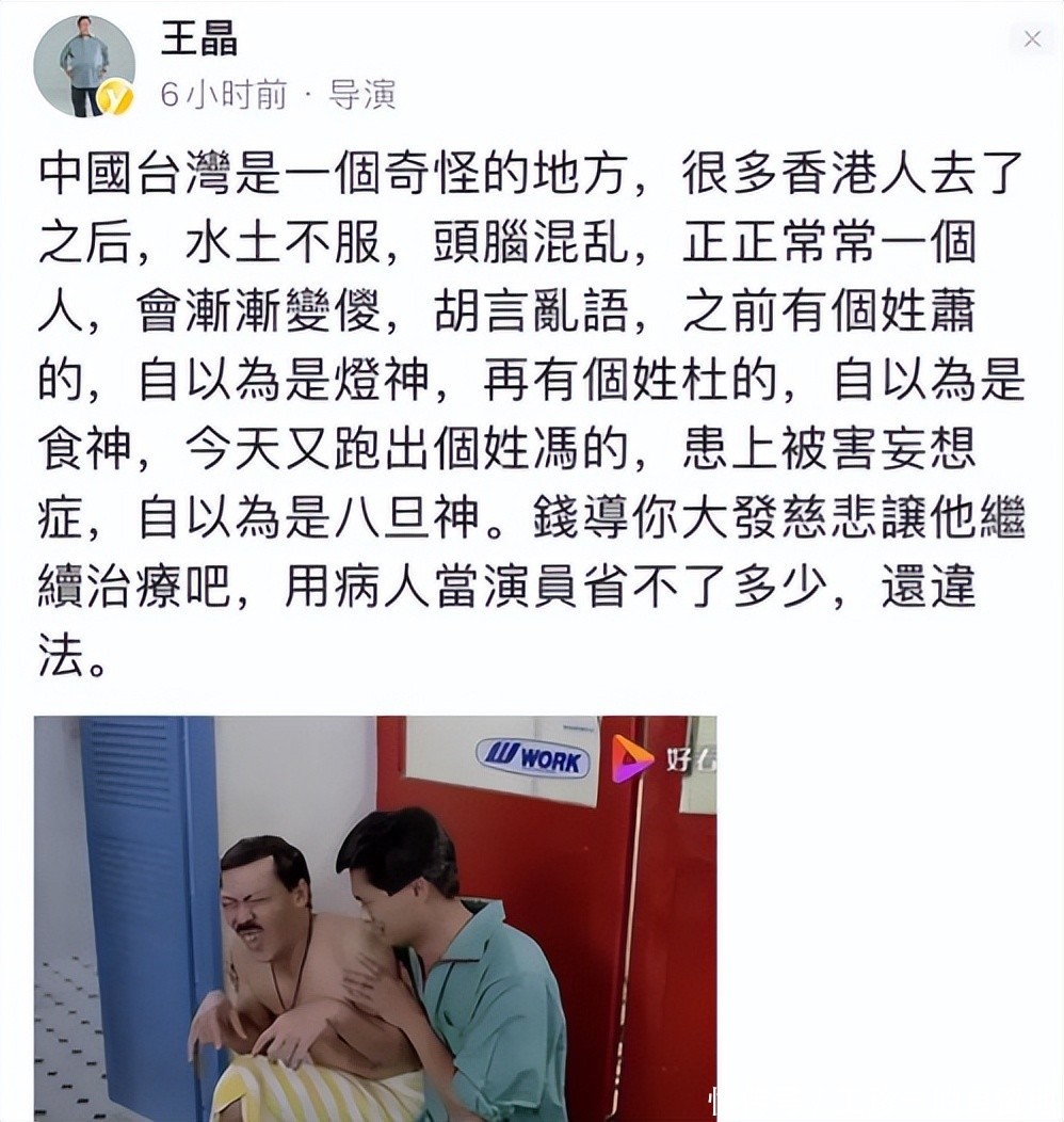 王晶随后回应说“冯淬帆是患了被害妄想症”,还说他移居台湾后,思维被影响了。